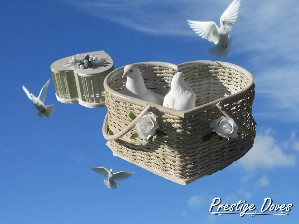 We can work with you to design your own package. Choose the number of doves you would like released. Decide the suitable time for their release and from a desired location. You may also choose to release the doves by hand or in a more traditional manner by the handlers from our elegant, white bird cages.
